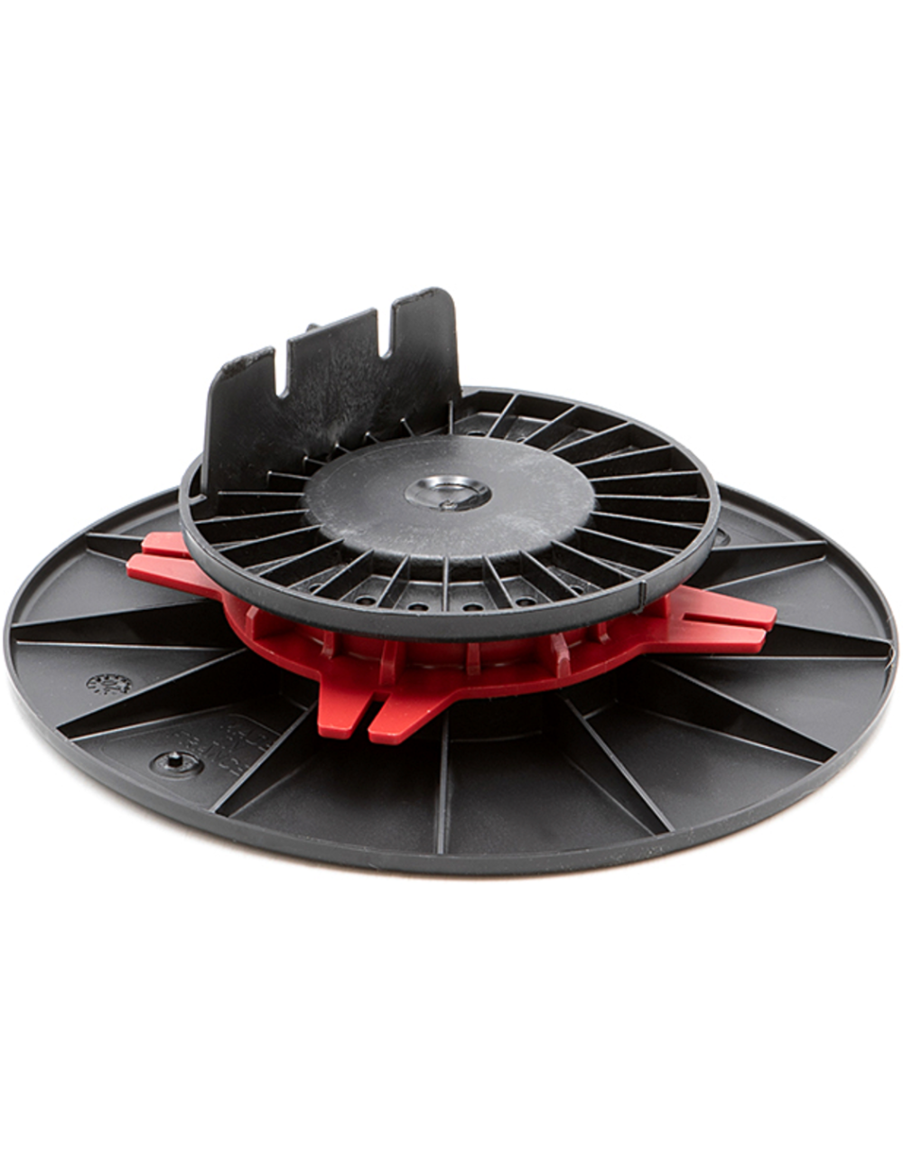 Stopa poziomująca Gardin M jest elementem systemu montażowego wykorzystywanego przy budowie tarasów wentylowanych. Umożliwia regulację wysokości konstrukcji w zakresie od 40 do 60 mm, dzięki czemu pozwala wyrównać niewielkie nierówności podłoża i dokładnie ustawić poziom tarasu.